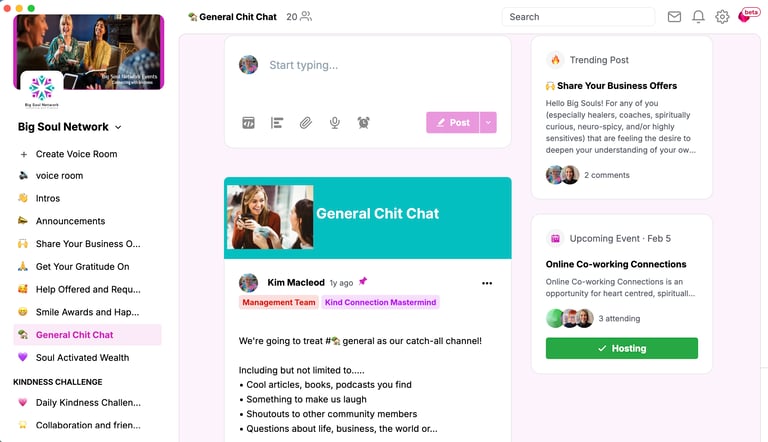 The platform uses magic links to connect your email to the community. Once you have signed up to join Big Soul Network you will have be sent a code to allow you to log in. If you have any difficulty connecting with the platform please reach out to kim@bigsoulnetwork.com.